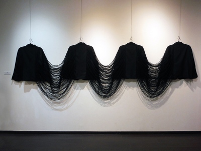 Jackets, yarn. Installation; 100 x 300 cm (2016)